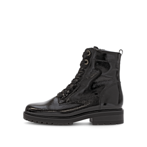 Affirmez votre style cette saison avec les bottines en cuir verni noir de Gabor, alliant élégance et brillance à un confort absolu. Dotées de détails raffinés en dentelle et d'un talon discret, ces bottines s'adaptent parfaitement au quotidien, offrant un maintien fiable et une foulée confortable.